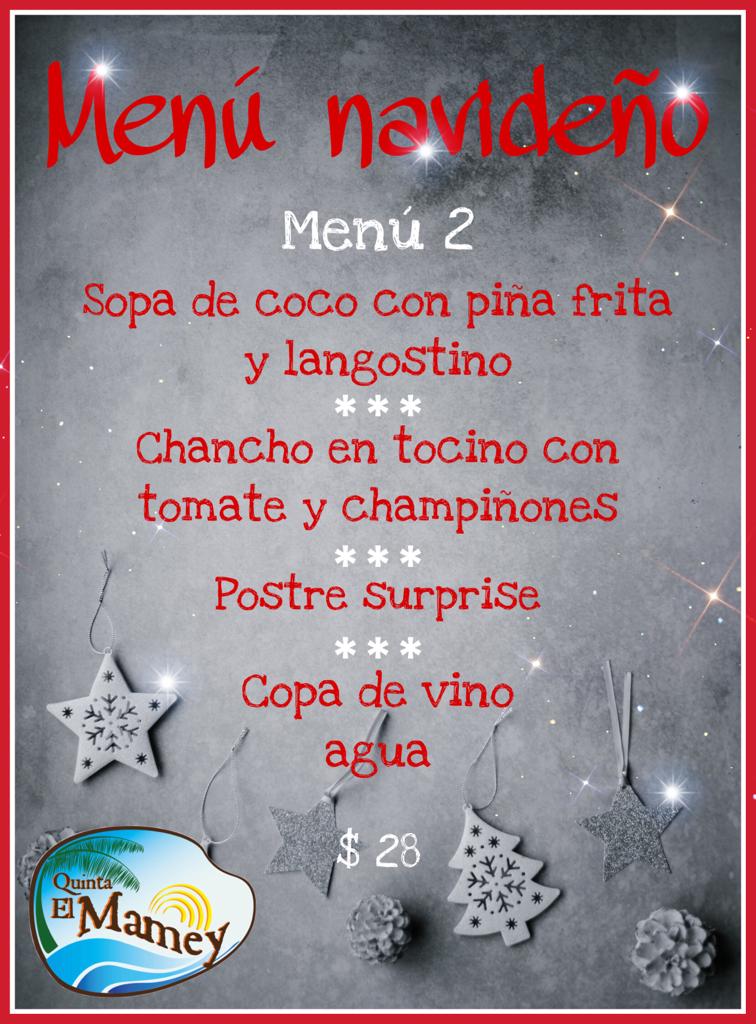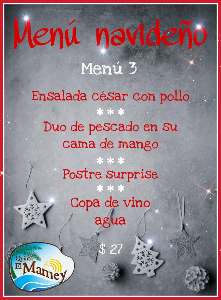 Boletín Diciembre 2022 QUINTA EL MAMEY Boletín Diciembre 2022 Feliz navidad Te deseamos a ti y a tu familia unas felices fiestas y un próspero año nuevo. Nuestros menús navideños Te complaceremos con un delicioso menú para una experiencia culinaria diferente. Para grupos de 4 a 26 personas, almuerzo o cena.Hospedaje disponible.Reservaciones con mínimo 3 días de anticipación. INFORMACION Y RESERVACION 10% de descuento en el menú de navidad para suscriptores del boletín con el códico 10%navidad8 Subscribir al boletín También podría gustarte Boletín Febrero 2023 01/02/2023 Boletín Enero 2024 14/01/2024 Boletín Diciembre 2023 08/12/2023